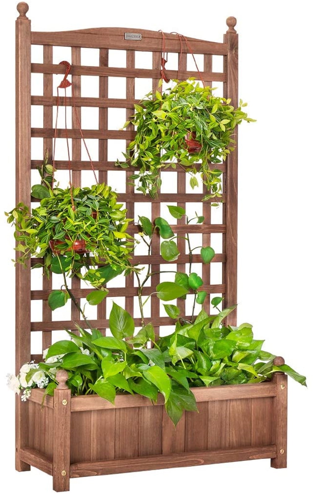 Amazon Com Vivohome 2 Packs Wood Planter Raised Garden Bed With Trellis 48 Inch Height Outdoor Garden Flower Standing Planter Box Lattice Panels With Planter For Patio Porch W Drainage Holes Patio Lawn